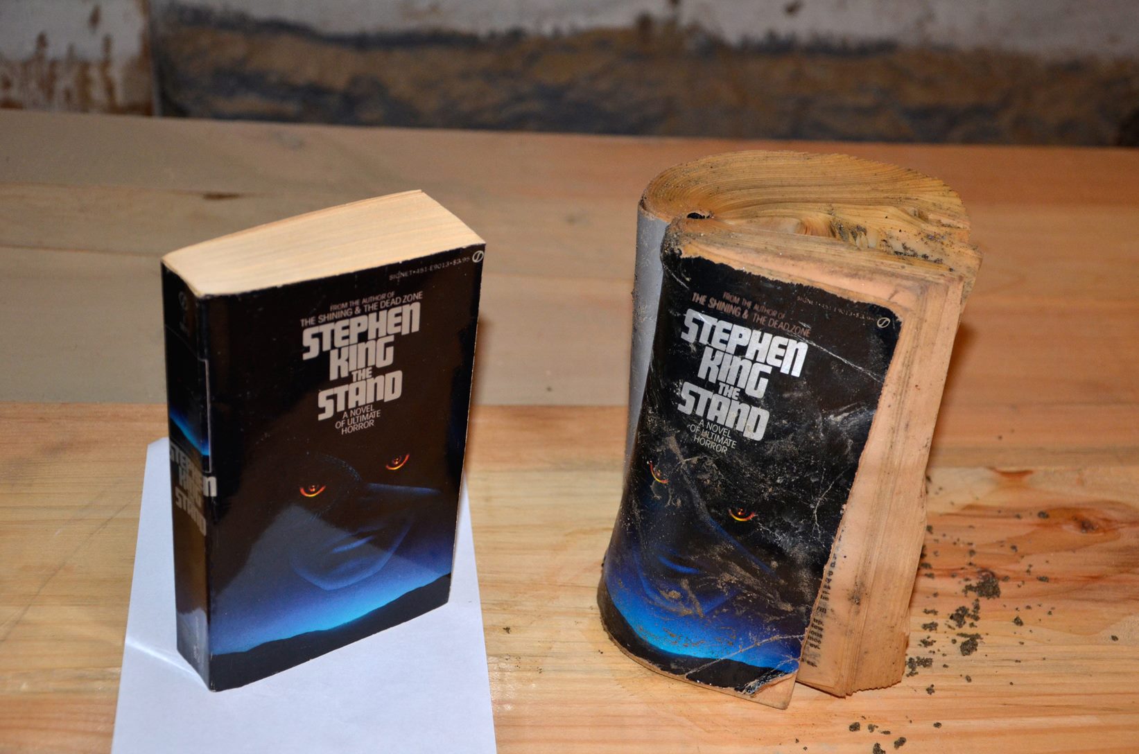 J’ai visité cette boutique l’année dernière, par hasard – bien qu’on ne vienne jamais à Bangor “par hasard” quand on sait “qui” y habite. C’est triste, c’était vraiment super à voir, plein de belles éditions, d’objets insolites. J’imagine la déprime totale du mec. Malheureusement même Stephen King ne pourra pas y faire grand chose, ce type de perte ne se rachète pas, même avec l’argent de l’assurance…