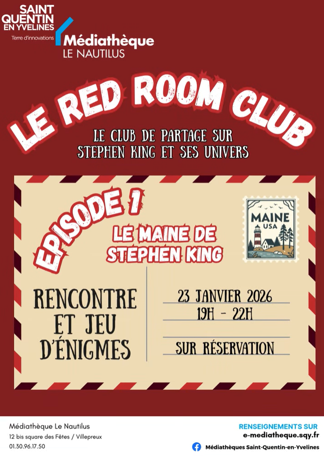 Un nouveau club de lecture-visionnage dédié à l’œuvre de Stephen King, intitulé Red Room Club, tiendra sa première session le soir du 23 janvier 2026 à Villepreux (Yvelines).