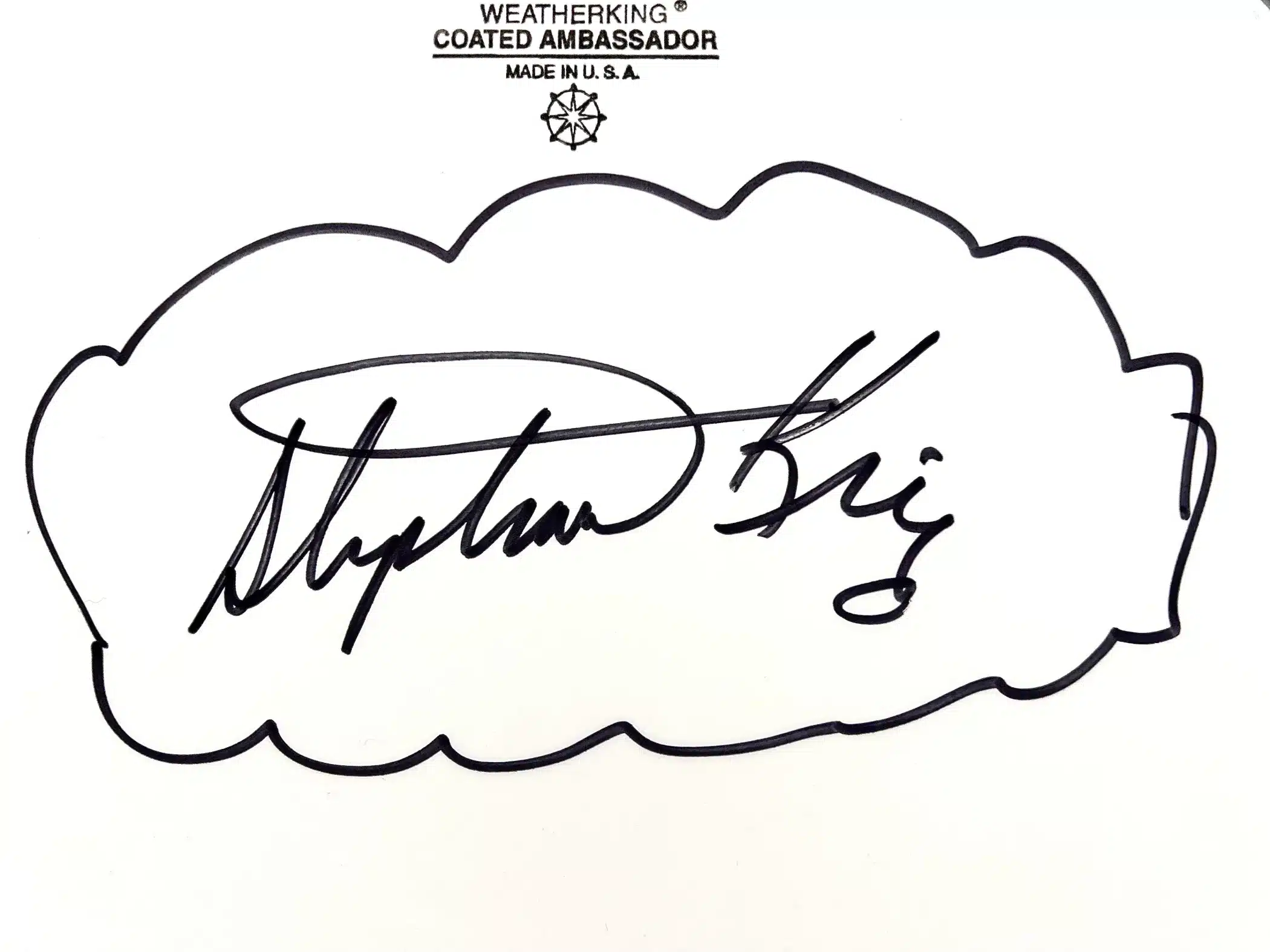 La librairie et galerie Baudelaire et Compagnie propose actuellement à la vente un autographe de Stephen King présentant des caractéristiques hors normes. Contrairement aux signatures classiques apposées sur les pages de garde de ses romans, celle-ci se déploie sur une longueur de 18 centimètres (on n’est pas passés loin du 19, quel dommage !), ce qui en fait un objet de collection particulièrement visuel.